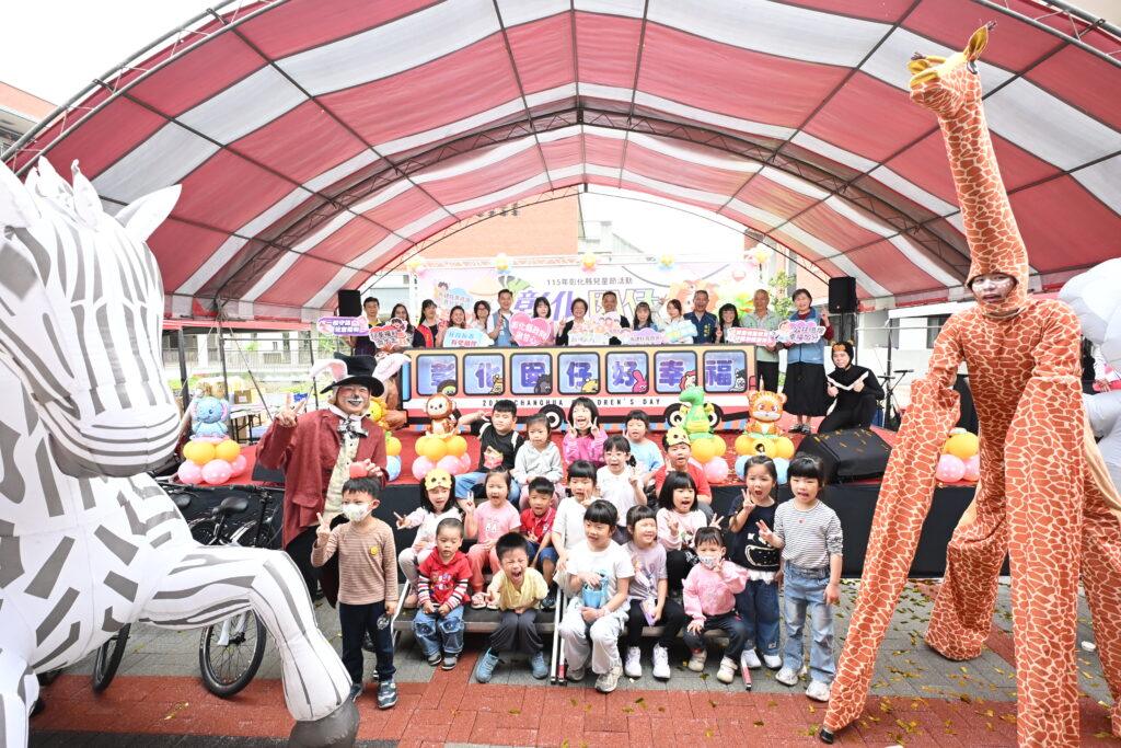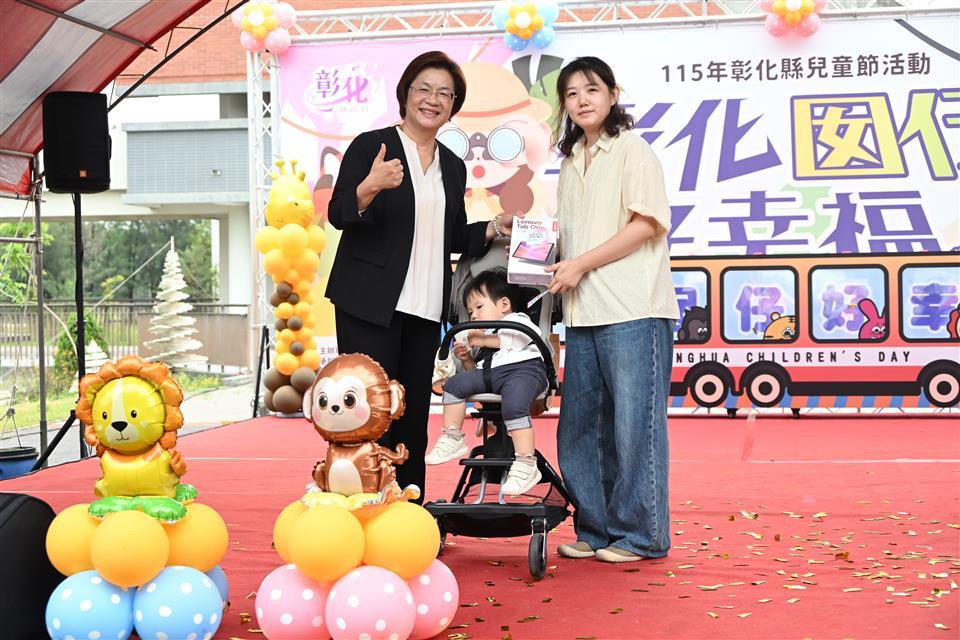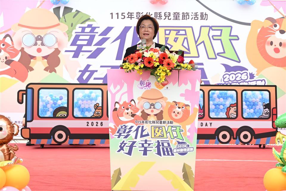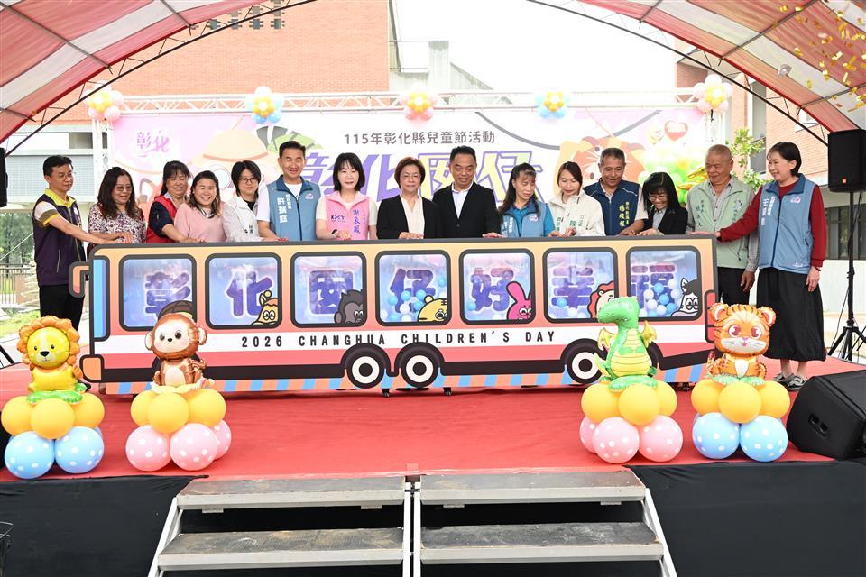 為慶祝115年兒童節,彰化縣政府跨局處合作舉辦兒童節慶祝活動,活動首場重頭戲「彰化囡仔好幸福-2026叢林動物派對」於今(3)日上午在彰化縣立鹿江國際中小學歡樂登場。現場湧入3千多名親子,縣長王惠美出席與大小朋友共同歡慶兒童節。