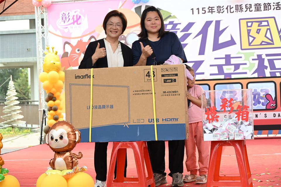 最後還有摸彩驚喜,包含液晶電視、平板電腦、自行車、滑步車等眾多好禮。現場歡笑聲不斷,引領縣內兒童青少年共度一個幸福歡樂的兒童節。