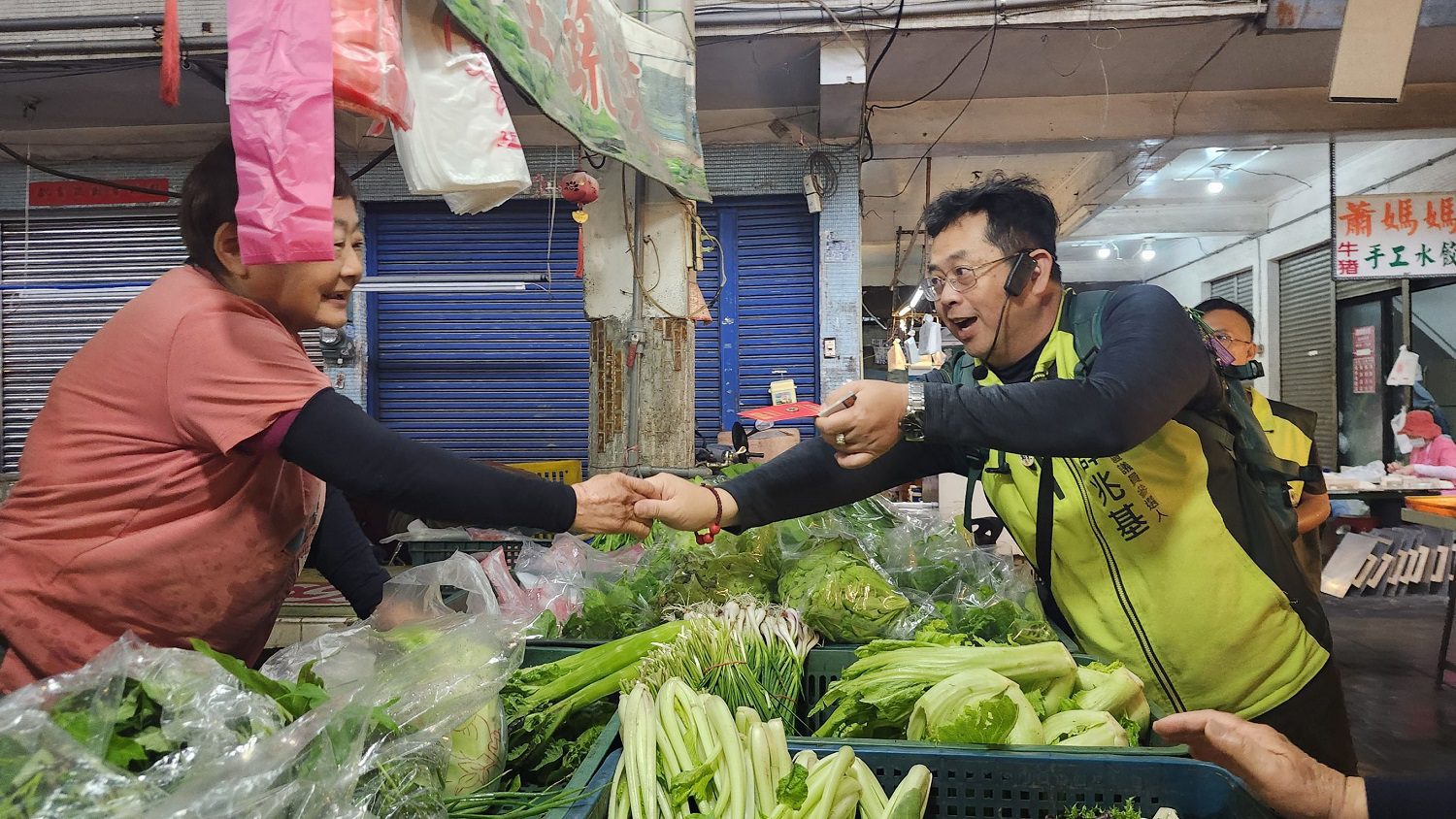 ▲左楠區市議員參選人薛兆基第三度走進左營莒光市場向