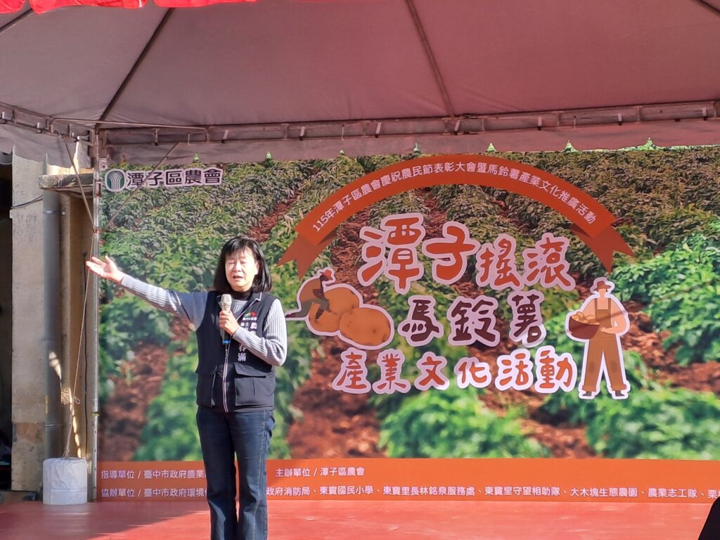 馬鈴薯是台中市重要的農產之一,為推廣在地農業、讓市民親近農村生活,市府農業局輔導潭子區農會,於今(7)日上午在潭子區農會東寶分部舉辦「2026潭子搖滾馬鈴薯產業文化推廣活動」,結合挖馬鈴薯體驗、音樂展演及農特產品展售,邀請民眾走入田間,認識在地農業、感受潭子農村的獨特魅力。