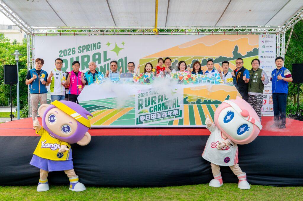 桃園市長張善政今(11)日下午前往平鎮區,出席「2026 SPRING RURAL CARNIVAL 春日田園嘉年華」。張市長表示,去年活動於北桃園深獲好評,今年特別移師平鎮新勢公園,集結全市25個親子館及復興區行動親子車能量,並整合客家局、消防局、平鎮區農會等跨局處資源,讓家長與孩子透過田園體驗增進互動與合作默契,共享溫馨的親子時光。