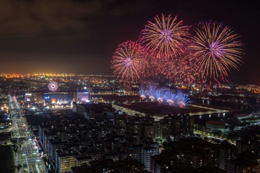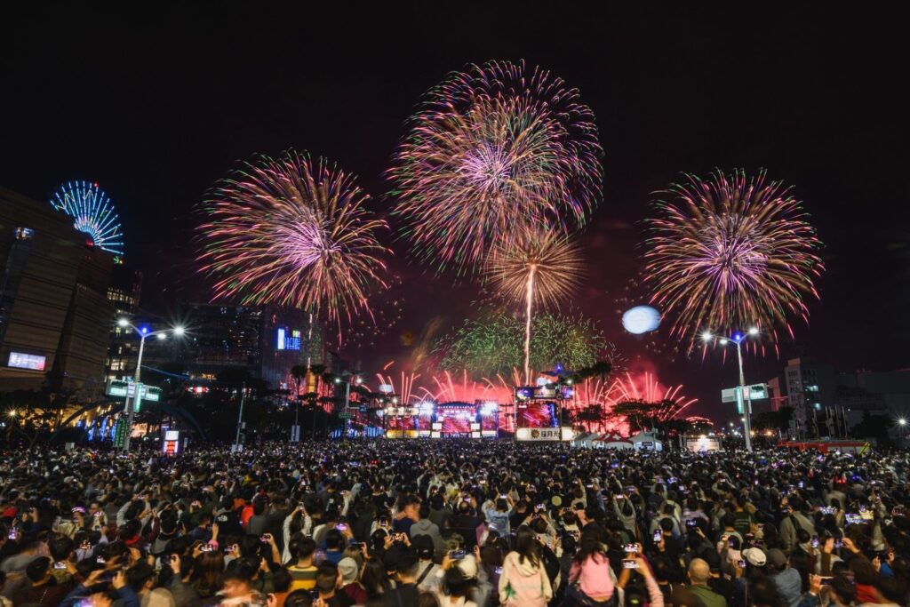 在眾人齊聲倒數後,隨即迎來240秒亞灣跨年煙火,象徵未來時刻都精彩動人,氣勢磅礡的花火在港都夜空畫下道道精彩,不同造型的絢麗花火照亮亞灣,搭配2025年曾到高雄開唱的BLACKPINK歌曲〈JUMP〉與TWICE的〈ONE SPARK〉,大家紛紛拿起手機紀錄感動的瞬間,幸福氛圍瀰漫四周,在新年的初始共享美好,期待新的一年好運連連。