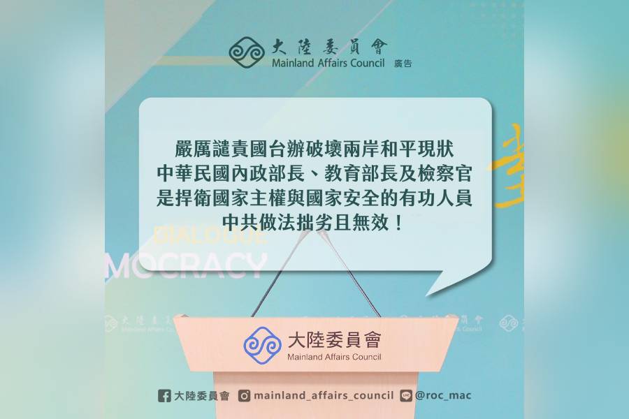 政治中心/綜合報導 中共國台辦7日宣布,將內政部部