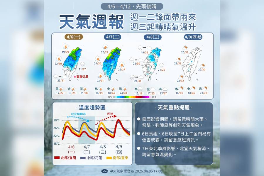 生活中心/綜合報導 受鋒面影響,4月4日及5日,多