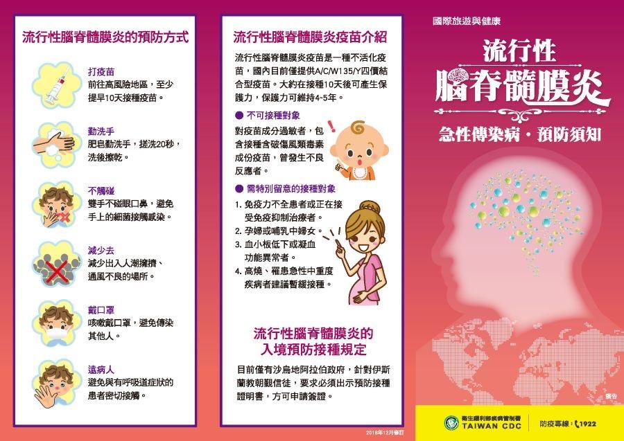 流行性腦脊髓膜炎預防方式、疫苗介紹。圖/疾管署 生