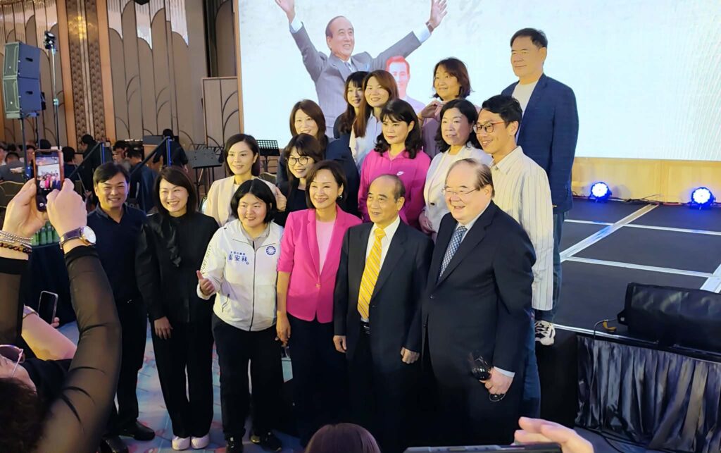 《現任國民黨高雄市黨部主委 柯志恩(不分區立委/前排右3)與黨籍議員們和王金平院長一起合影(右1)為秘書長李乾隆代表鄭麗文主席出席感恩餐會》(記者 陳苗生/攝)